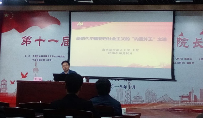 王智经理的主题发言题为“新时代中国特色社会主义的内圣外王之道”。在发言中,王智认为中国特色社会主义进入新时代,既需中国共产党通过“全面从严治党”,以自我革命而至“内圣”;又需中国共产党基于“内圣”来外化行动及功业锻造、担当责任,实现“外王”之天下使命。因此一方面,中国共产党必须以党的自我革命来推动党领导人民进行的伟大社会革命,把党建设成为始终走在时代前列、人民衷心拥护、勇于自我革命、经得起各种风浪考验、朝气蓬勃的马克思主义执政党;另一方面,新时代中国特色社会主义的历史来由、现实成就、道路示范和方略措施均具有显然的世界意义,一种去除“霸道”、基于人类命运共同体的新型世界意义。中国共产党以自我革命担负天下情怀,这是旧式的“内圣外王”跨越时空的新生意蕴。