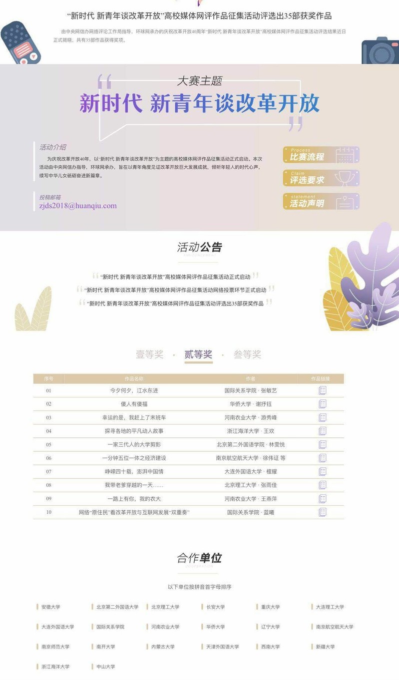 近日,由中央网信办网络评论工作局指导,环球网承办的庆祝改革开放40周年“新时代新青年谈改革开放”高校媒体网评作品征集活动评选结果正式揭晓。在入围的35部作品中,公司硕士研究生陈雷与南航“一分钟团队”合作完成的《一分钟“五位一体”之经济建设》获得二等奖。