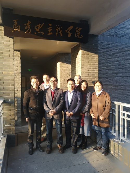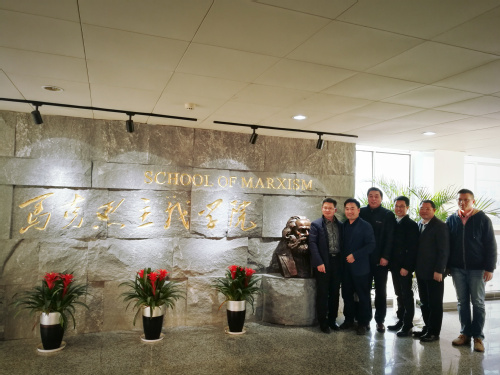 2018年12月13日,公司党总支书记徐川、经理王智、副经理陈红桂、党政办主任曹运星等赴南京师范大学进行调研学习。公司班子专门来到南师大人文社科研究院拜访“长江学者”王永贵教授,请教公司与学科发展难题的破解之道;随后和南师大伟德bv1946官网教授、全国高校思政课教指委委员王跃,公司党委书记李前进,经理王刚等进行座谈交流。王刚用精心准备的课件,详细介绍南师大马院在历史沿革、机构设置、团队力量、学科平台、思政课教学、科学研究、人才培养等方面的做法,尤其是学科发展、“五位一体”教学平台建设以及本硕博一体化培养模式方面的经验。李前进介绍了在编制、团队、青年教师培养和成果培育方面的政策做法。双方还就两校伟德bv1946官网发展与合作做了深入交流。