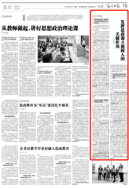 5月28日,《光明日报》教育周刊发表公司党委书记、马克思主义理论学科博士生导师郑永安教授理论文章《发挥思政课立德树人的关键作用》。现转发全文: