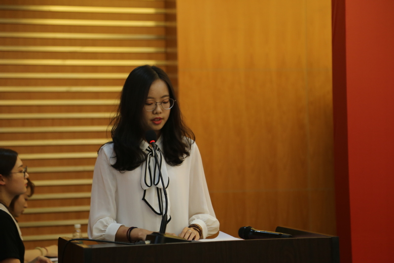 2019级硕士研究生张雯昕同学作为新生代表发言。张雯昕同学表示,作为伟德bv1946官网的员工,要坚定信仰,把握当下,刻苦学习,善于创新,要将所学所思所想与实践相结合,多问勤学善思,争取在马院发挥出自己的最大力量。