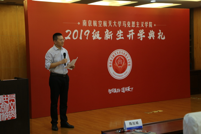 经理王智对2019级全体新生表示了热烈的欢迎和衷心的祝福。王智从“学”字入手,欢迎大家来到南航,走进伟德bv1946官网,选择马克思主义这门学科。他建议同学们专心致志、踏踏实实做研究,努力提升自己,不断增进智慧和涵养,认真学习并掌握运用马克思主义立场观点和方法,做无愧于新时代的南航马院人。