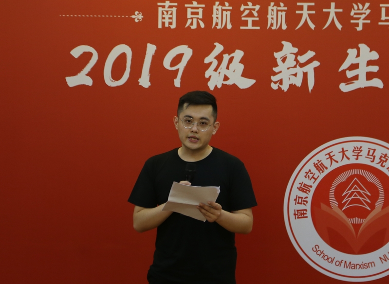 经理王智对2019级全体新生表示了热烈的欢迎和衷心的祝福。王智从“学”字入手,欢迎大家来到南航,走进伟德bv1946官网,选择马克思主义这门学科。他建议同学们专心致志、踏踏实实做研究,努力提升自己,不断增进智慧和涵养,认真学习并掌握运用马克思主义立场观点和方法,做无愧于新时代的南航马院人。