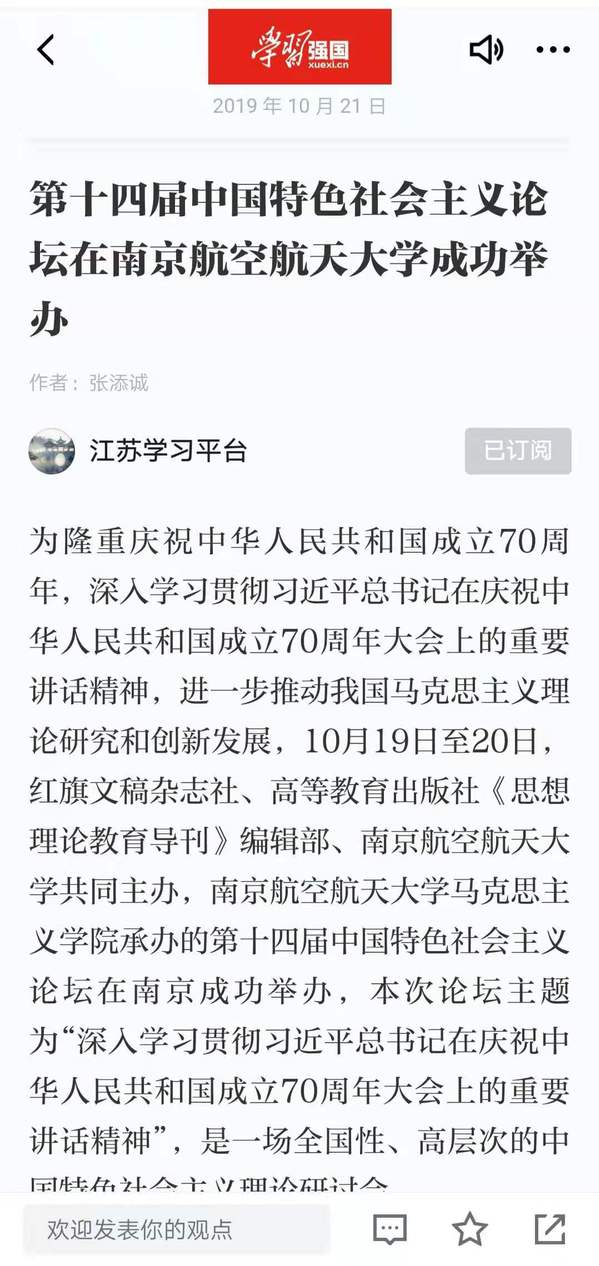 10月21日,“学习强国”平台报道了由红旗文稿杂志社、高等教育出版社《思想理论教育导刊》编辑部、伟德bv1946官网共同主办的第十四届中国特色社会主义论坛。现转发全文: