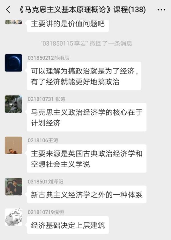 据统计,员工到课率达到99.5%,无员工无故缺席,课堂氛围活跃,课程微信群、QQ群里讨论热烈。同学们宅在家中也体会到思政课学习的快乐和成长,纷纷为老师“主播”们的精彩授课点赞。