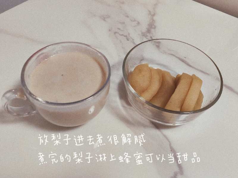 2019级硕士研究生李梦圆说:“假期发掘了制作奶茶的潜能,适量水置于锅中,水烧开之后放入茶包,桂皮,削皮切块的梨。大火煮开以后,小火慢炖五分钟左右,加入牛奶煮沸就可以出锅了。”