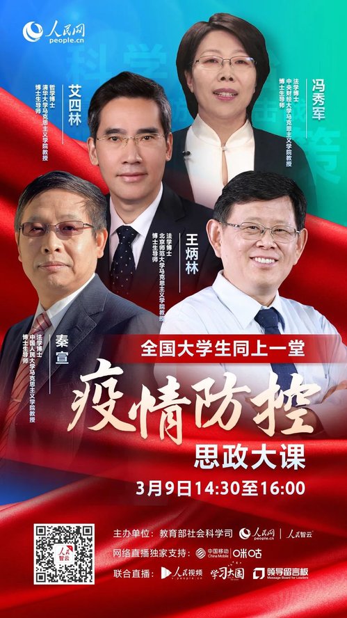 在举国上下众志成城、万众一心做好新冠肺炎疫情防控工作的特殊时期,3月9日,由教育部社会科学司、人民网联合举办的“全国老员工同上一堂疫情防控思政大课”通过网络直播的形式开课。此次“思政大课”邀请了清华大学伟德bv1946官网艾四林、中国人民大学伟德bv1946官网秦宣、北京师范大学伟德bv1946官网王炳林、中央财经大学伟德bv1946官网冯秀军四位教授结合思政课程的内容对党中央关于疫情防控的决策部署进行了深刻的解读。马院高度重视此次活动,统筹安排、克服直播拥堵困难,提前三天通过公司官网、微信等平台积极推广宣传,及时下发观看通知,鼓励思政教师组织员工统一观看、研讨。