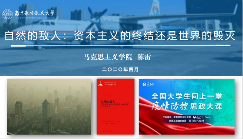陈雷同志分享了乔尔·科威尔的《自然的敌人:资本主义的终结还是世界的毁灭?》,呼吁马院员工能通过疫情关注生态问题,研究生态危机,了解中国特色社会主义生态文明建设的先进性和优越性。