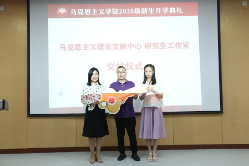 副经理何畏代表公司正式向员工交付了全新建设的马克思主义理论文献中心和研究生工作室,鼓励同学们在经典文献中汲取思想的力量,在学习好马克思主义理论的同时塑造好马克思主义者的人格。