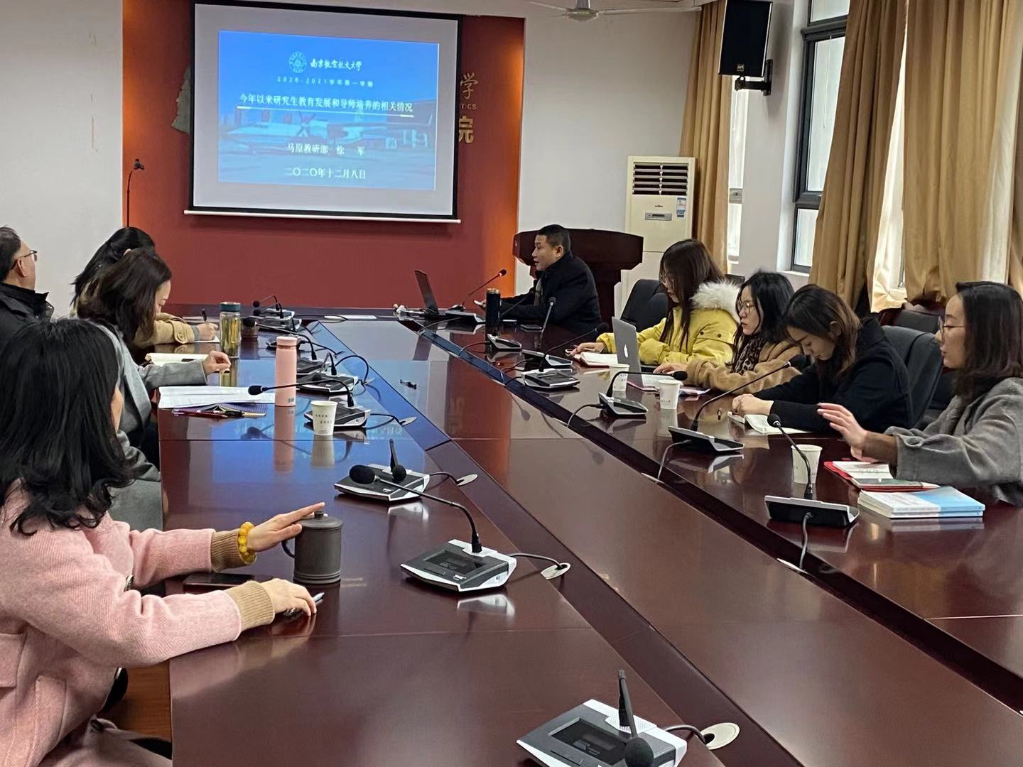 最后,徐军教授汇报了上周研究生院召开座谈会的相关情况,同时列举了当前公司和公司研究生工作中的重点问题,比如如何将各学科专业与“思政”相融合、如何确定中期考核等关键环节的标准、导师应当如何面对员工的思想、心理甚至是极端情况等8个方面,引发了与会老师的热烈讨论。