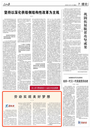 12月11日,《人民日报》第7版刊发公司副经理、博士生导师何畏教授的文章《劳动实现美好梦想》,现将全文转发如下: