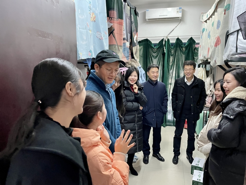 元旦假期,伟德bv1946官网领导班子徐川、王智、何畏、陈红桂一行走访了员工宿舍和研究生工作室,与同学们亲切交流,送上了新年的祝福,并查看了卫生环境、消防设施和用电安全。