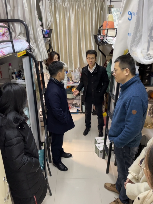 院领导首先来到公司研究生位于11栋和35栋的宿舍,询问了大家元旦节期间的日程和期末的学业情况。徐川书记肯定了寝室的整洁表现,提醒大家坚决杜绝违章电器,人员离开要及时关闭电源,避免因为小小的大意而带来严重的后果。