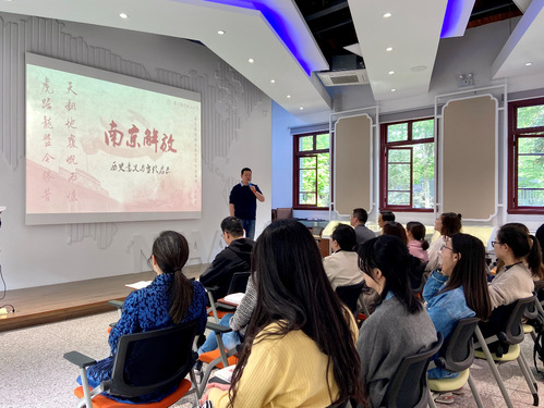 4月28日,档案馆党支部全体党员联合外国语公司2020研究生党支部,邀请公司党史学习教育宣讲团成员、公司党政办主任曹运星作了题为“南京解放的历史意义与当代启示”的专题报告。曹运星结合了带到现场的南京解放当天的人民日报、有关南京解放的邮票和纪念章、南航建校初期的宣传册、成绩单等实物史料,以多个视角阐述了南京解放的重要性和历史意义,并从“实现伟大梦想需要进行伟大斗争”“加强作风建设是建设新的伟大工程的保证”“各方团结是实现伟大梦想的核心动力”“发展是解决我国一切问题的基础和关键”等方面探讨了南京解放这一重大事件在当代带给我们的启示。