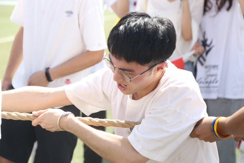 运动会的第一个项目是师生拔河友谊赛,公司派宋文璇同学为代表加入员工队,与老师队进行紧张而激烈的对抗。