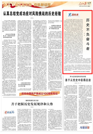 6月28日,《人民日报》第17版刊登公司何畏教授的文章《历史不负奋斗者》,现将全文转发如下: