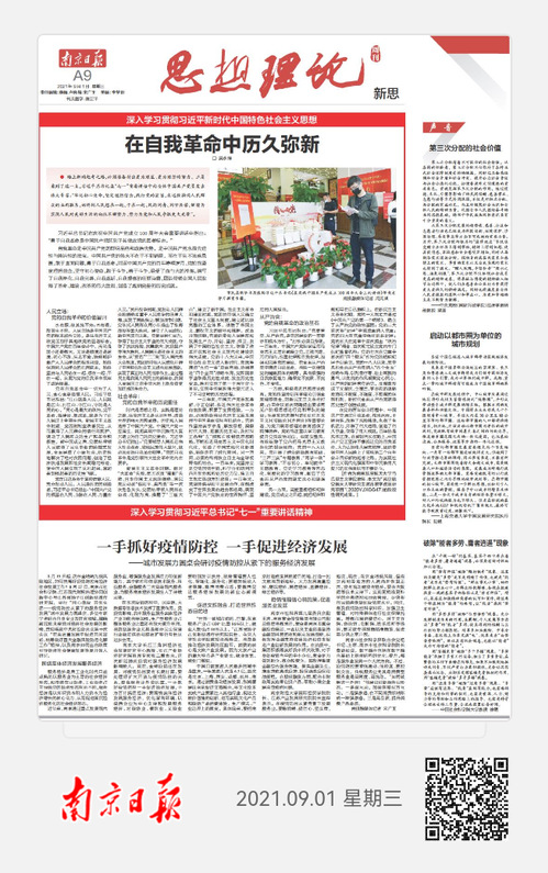 9月1日,《南京日报》A9版刊登公司吴永祥老师的文章《在自我革命中历久弥新》,现将全文转发如下: