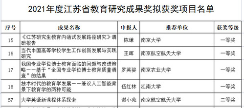 近日,江苏省教育厅公布了2021年度江苏省教育研究成果奖的评审结果。公司党委常委、宣传部/教师工作部部长、公司硕士生导师王晖的专著《当代中国高等公司员工工作创新发展与实践研究》获一等奖,外国语公司谢小苑教授的专著《大学英语新课程体系探索》获二等奖。