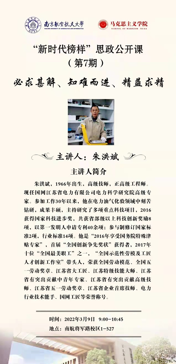 “新时代榜样”思政公开课第7期:必求甚解、知难而进、精益求精