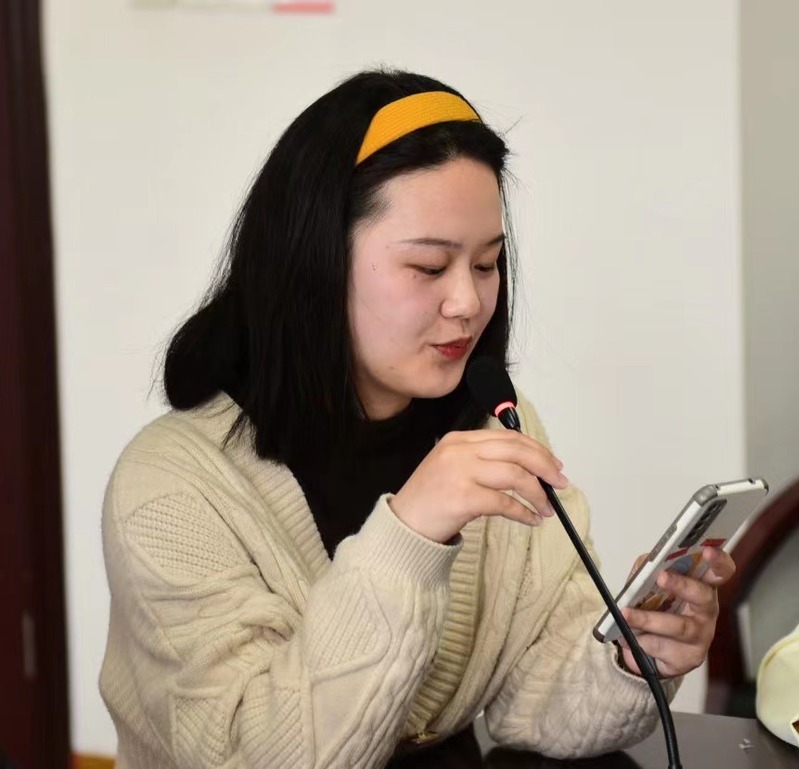 接下来,刘烨晖同志播放了黄河大合唱的演奏视频,并以此为伴奏进行第一场全体互动——击鼓传花。每当音乐停止,拿着花的同志都要讲述一首红色歌曲或革命诗词的背景故事,并即兴唱或诵一段。姜明敏等同志依次演唱了地道战、国际歌等歌曲。