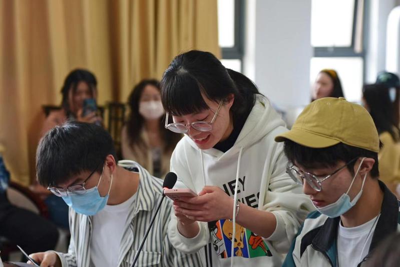 在击鼓传花唱歌环节结束后,活动进入了下一项议程——诗词和歌曲接龙。当音乐停止时,拿到花的同志会被提问,要求接出播放歌曲或者诗词的下一句,如不会,可以在十秒之内查阅并回答,同志们准备充分,都完美演绎了红歌和诗词剩下的部分,将本次活动带向了高潮。