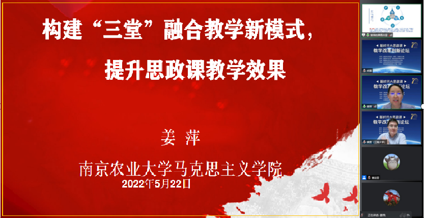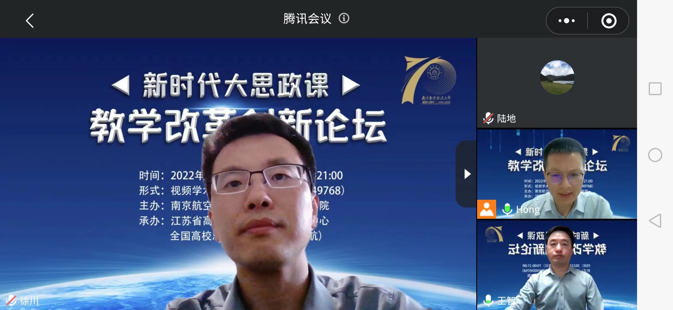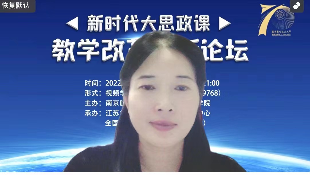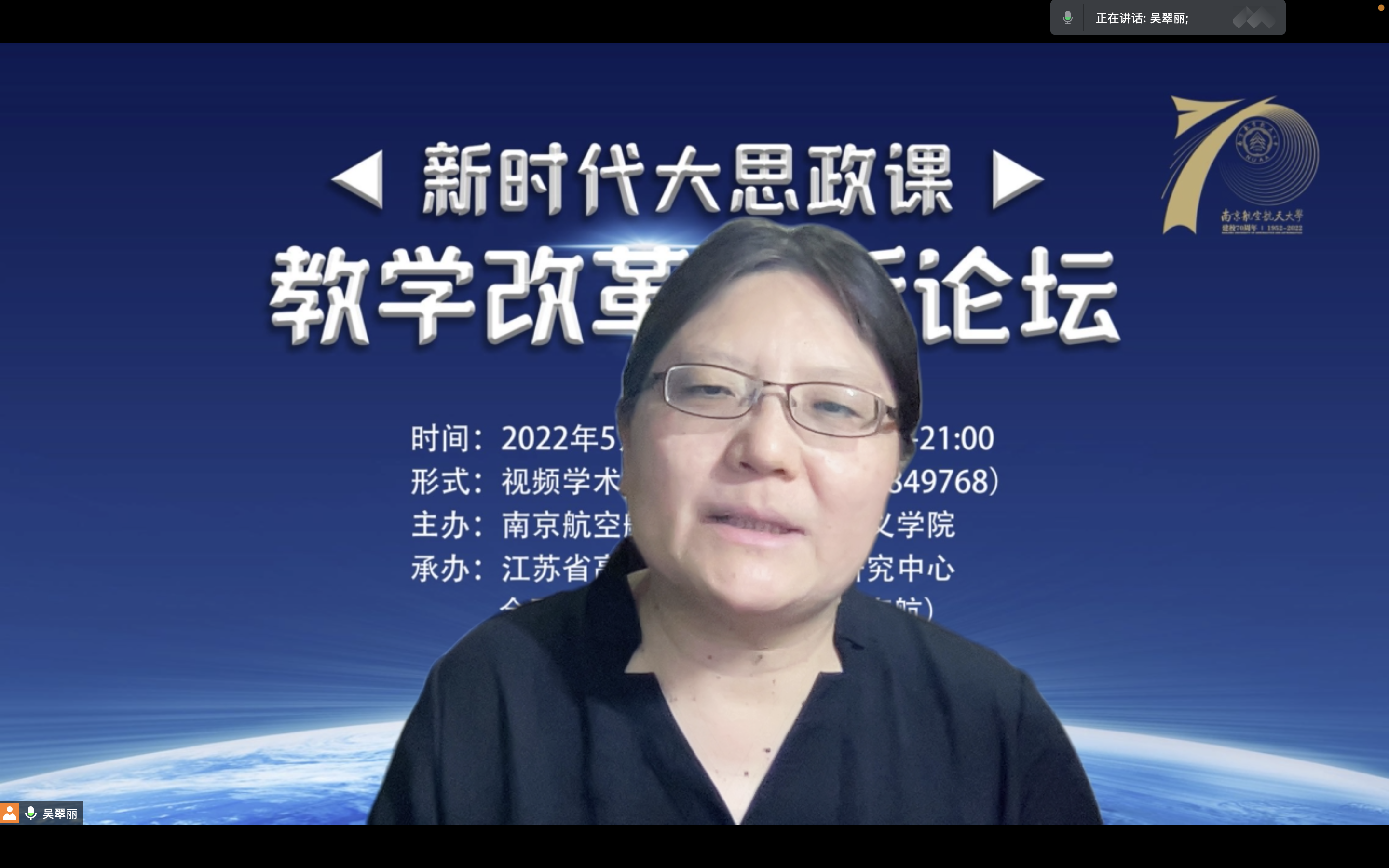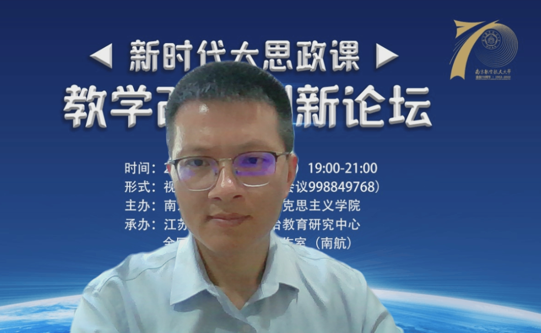 2022年5月22日,由伟德bv1946官网、江苏省高校思想政治教育研究中心、全国高校思政名师工作室(南航)主办的新时代大思政课教学改革创新论坛在公司召开。来自南京大学、南京师范大学、苏州大学、河海大学、南京农业大学、江南大学、南京艺术公司等多所高校的专家学者,以线上方式参加了本次论坛。