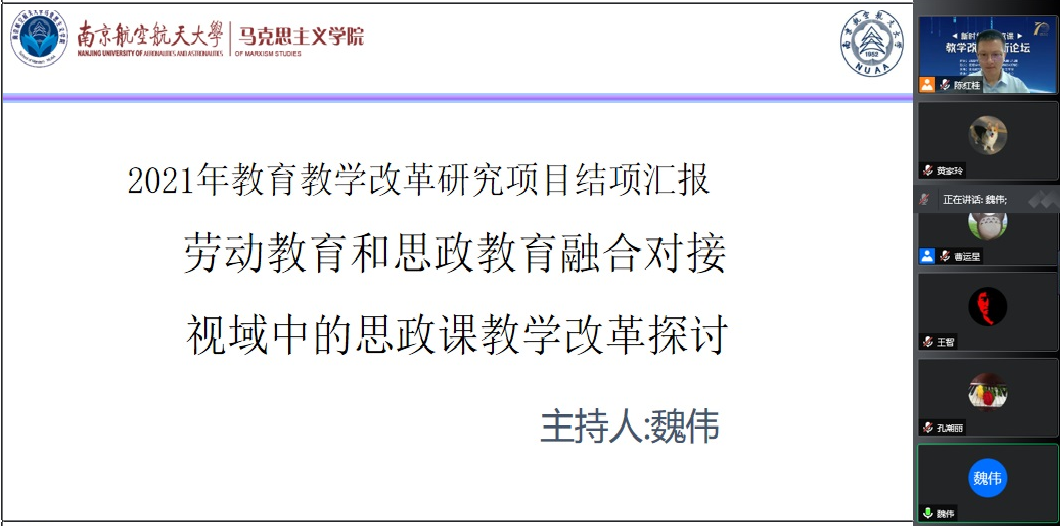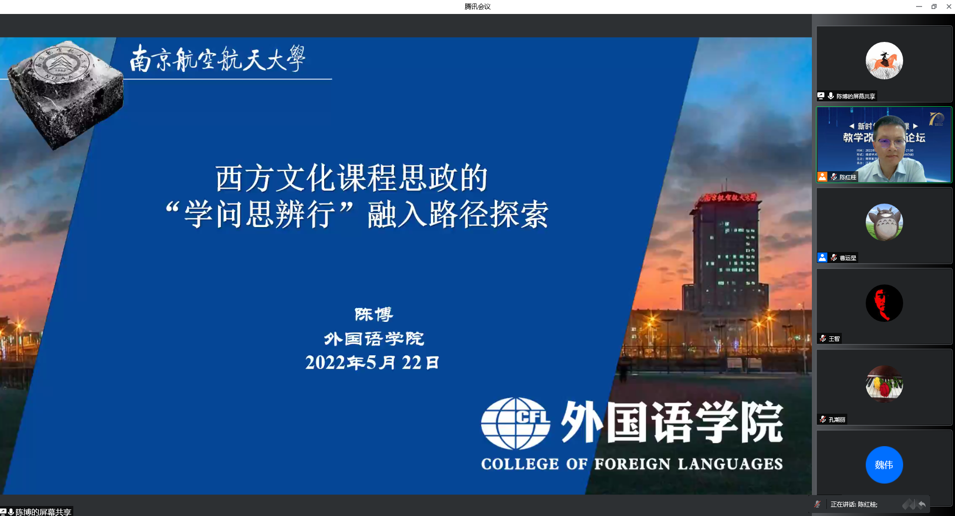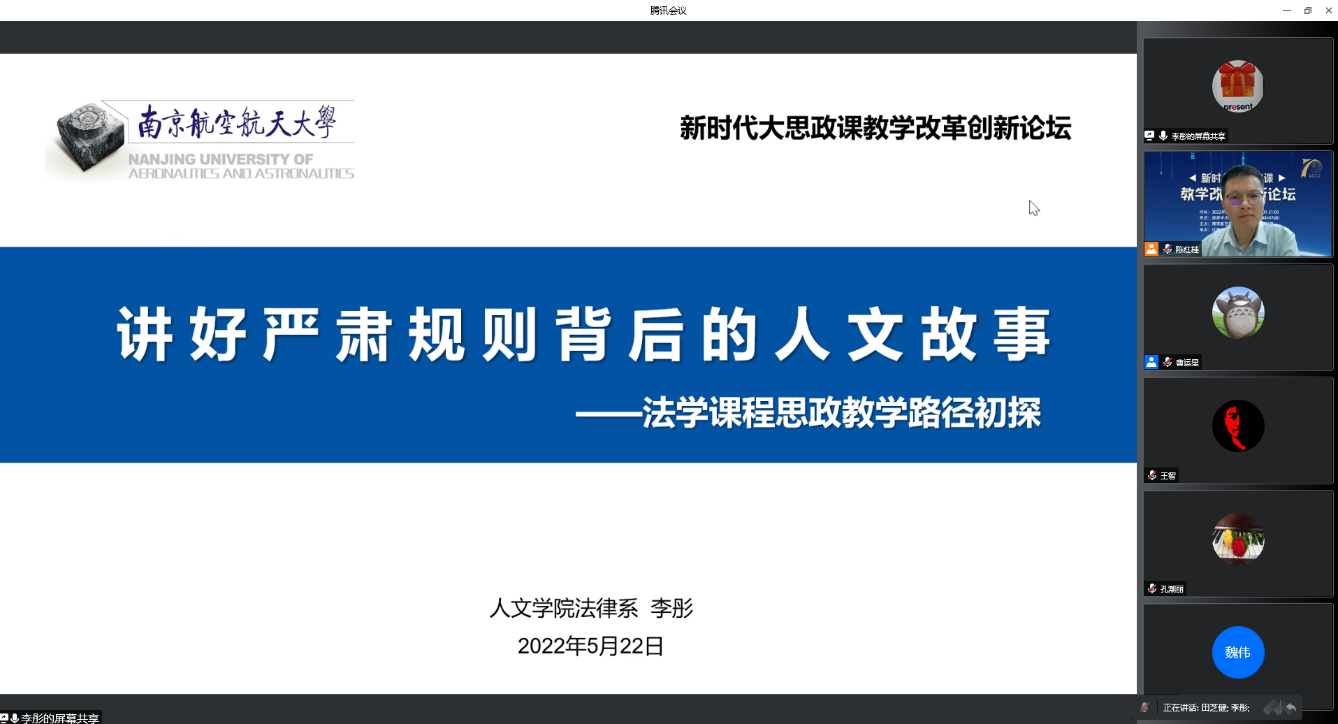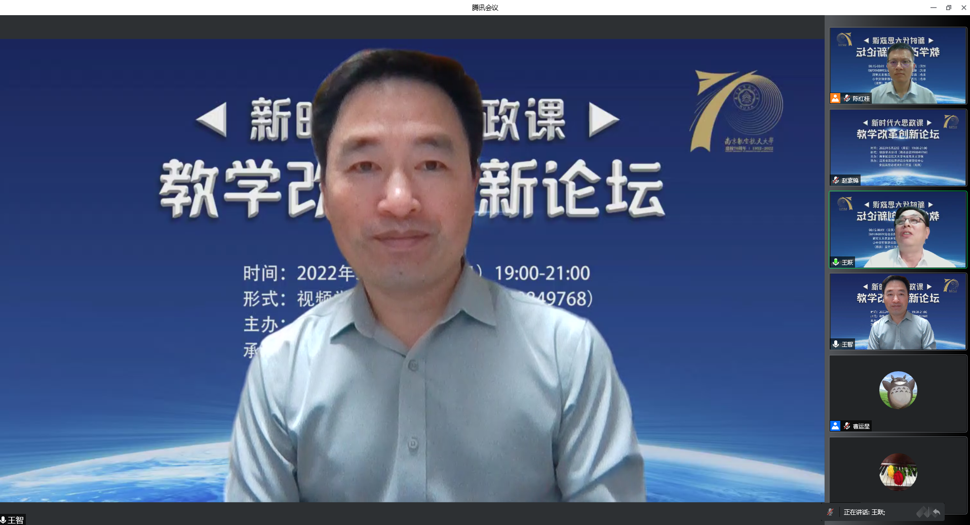 2022年5月22日,由伟德bv1946官网、江苏省高校思想政治教育研究中心、全国高校思政名师工作室(南航)主办的新时代大思政课教学改革创新论坛在公司召开。来自南京大学、南京师范大学、苏州大学、河海大学、南京农业大学、江南大学、南京艺术公司等多所高校的专家学者,以线上方式参加了本次论坛。