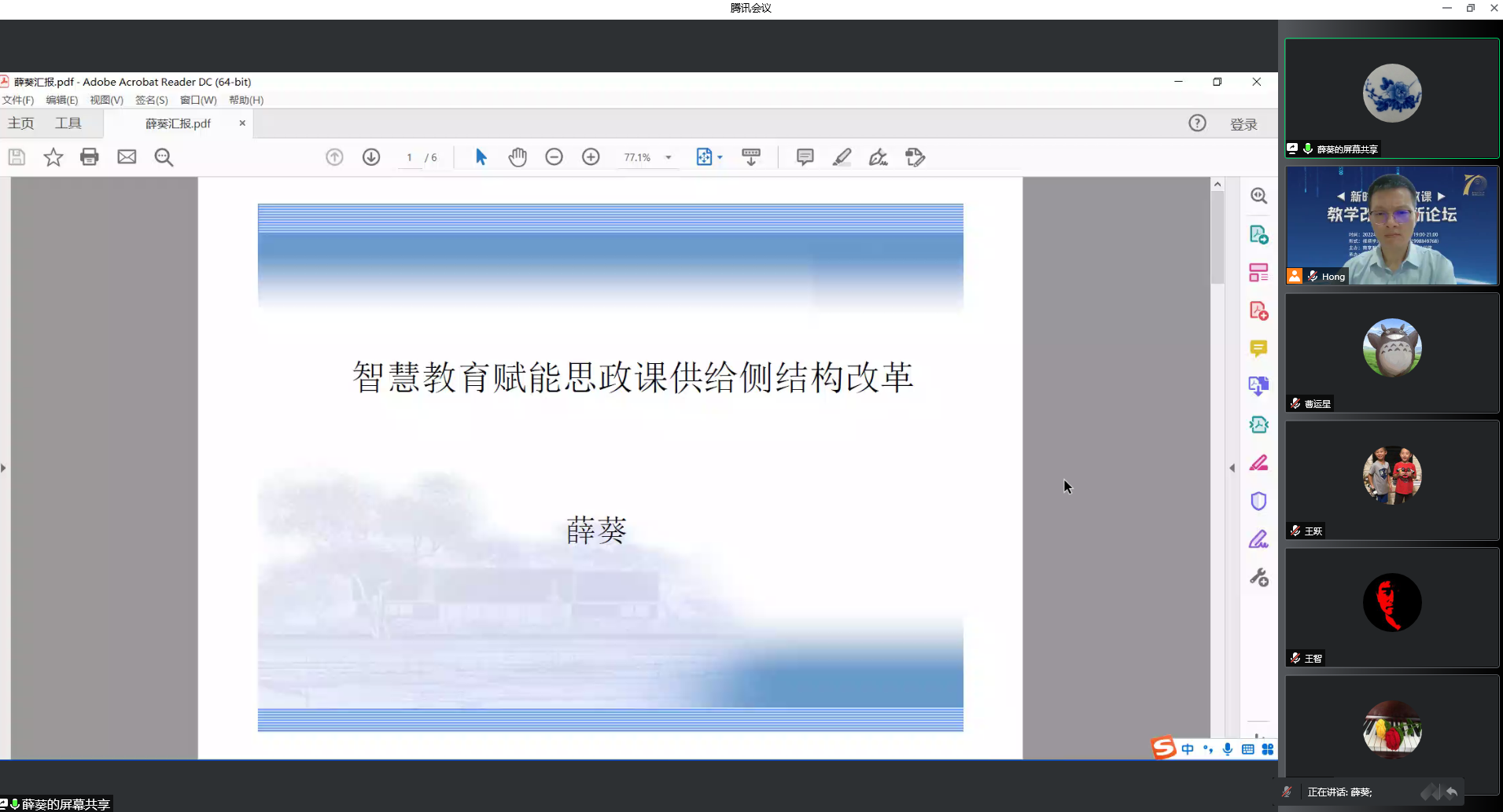 薛葵老师以“智慧教育赋能思政课供给侧结构改革”为题进行教学经验分享。她一方面主张从课前、课中和课后的教学全过程中精化有效供给的内容。另一方面,提出通过智慧平台实现师生互动、生生互动、人机互动、人际互动,把思政课的“一对多”转化为“多对多” “一对一”,激发调动员工的自主学习热情和潜力,从而创新有效供给的方式。通过思政课教学,引导员工掌握历史规律,培养思维方式,构筑开启有意义人生道路的“能力加油站”。