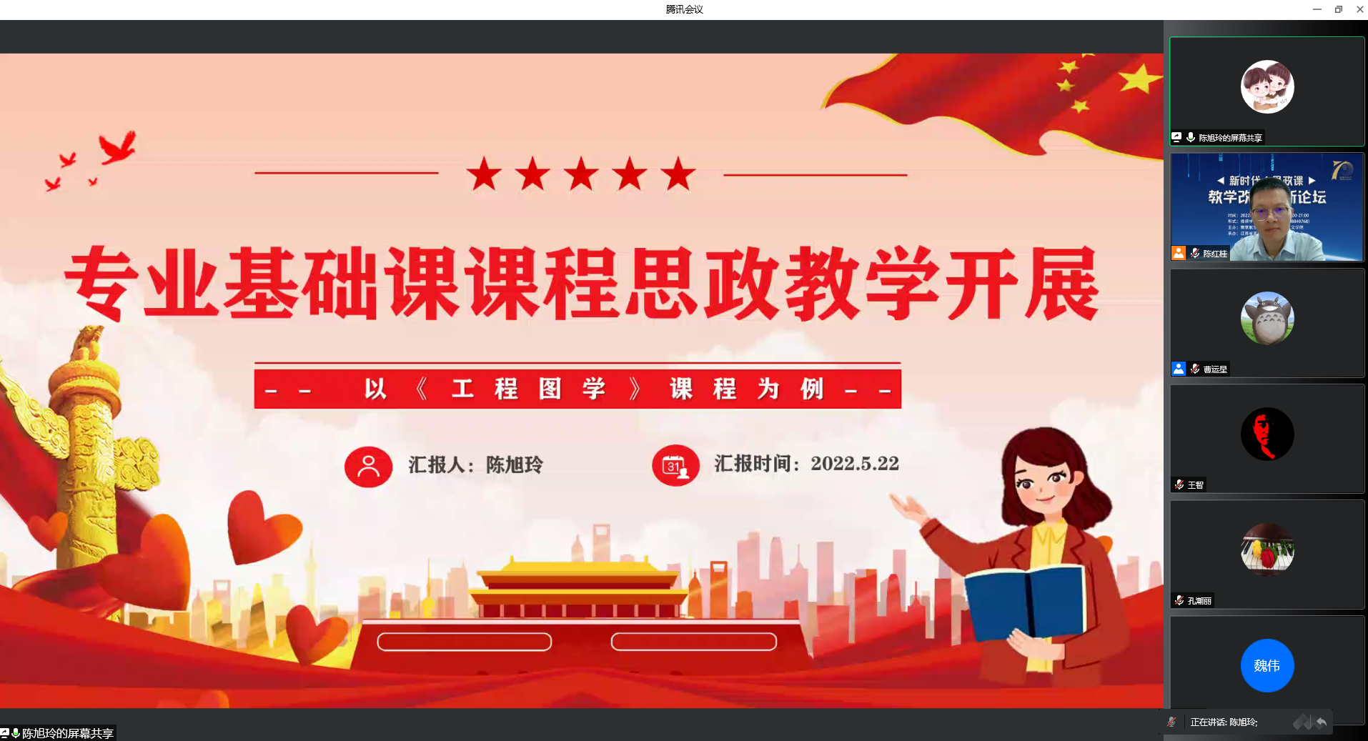 机电公司陈旭玲老师从“积极探索理论,推进课程思政”、“明确价值意蕴,挖掘思政元素”和“落实立德树人,创新教学方法”三方面介绍了《工程图学》课程开展课程思政教学的情况。力求做到创新课程思政教学方法,提升课堂的生动性和感染力,调动员工的积极性和参与感,发挥课程思政的最大效能。