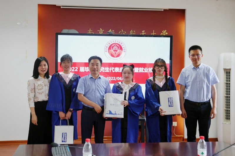 会议结束,院领导向毕业生赠送毕业礼物并合影留念。
