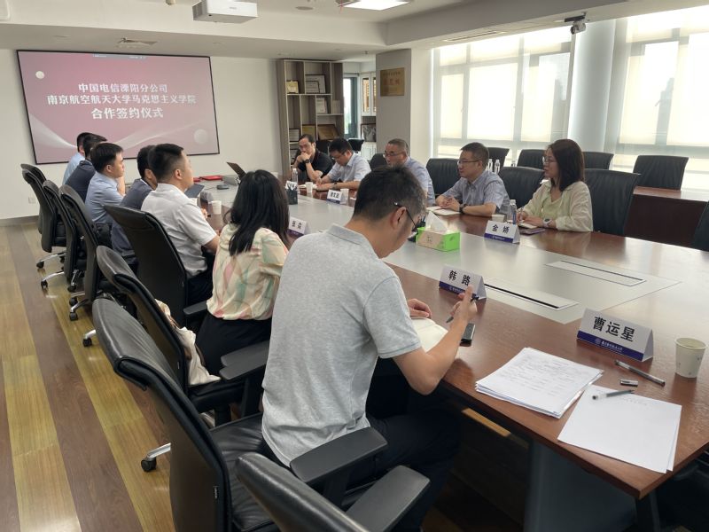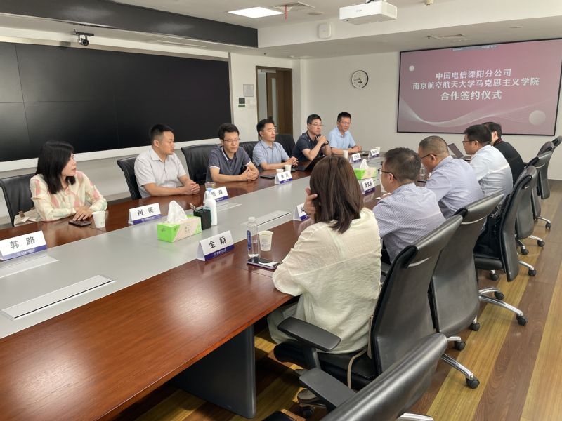 潘文波总经理介绍了公司的发展状况,表示溧阳电信向来重视党建和思政工作,希望借合作契机与南航马院建立联学联动机制,邀请专家学者进行专题党课、企业文化、企业管理能力提升等方面的系统性培训,协助指导申报国家级、省级课题,并依托南航马院各类学科平台,对未来5-10年国家、地方电信类产业发展政策、校园网络公共安全、高校智慧教育等方面进行研究、分析、解读。