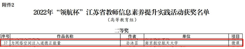 近日,省教育厅办公室发布《关于公布2022年“领航杯”江苏省教师信息素养提升实践活动获奖名单的通知》,公司教师孙沐芸主讲作品《为网络空间注入道德正能量》荣获二等奖。