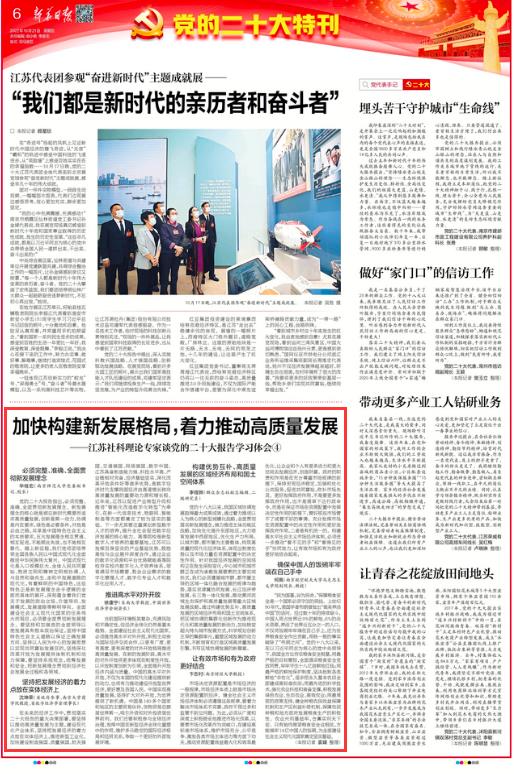 10月21日,《新华日报》第6版“党的二十大特刊”刊发了对公司何畏教授的特约采访《加快构建新发展格局,着力推动高质量发展——江苏社科理论专家谈党的二十大报告学习体会④》,现将全文转发如下:
