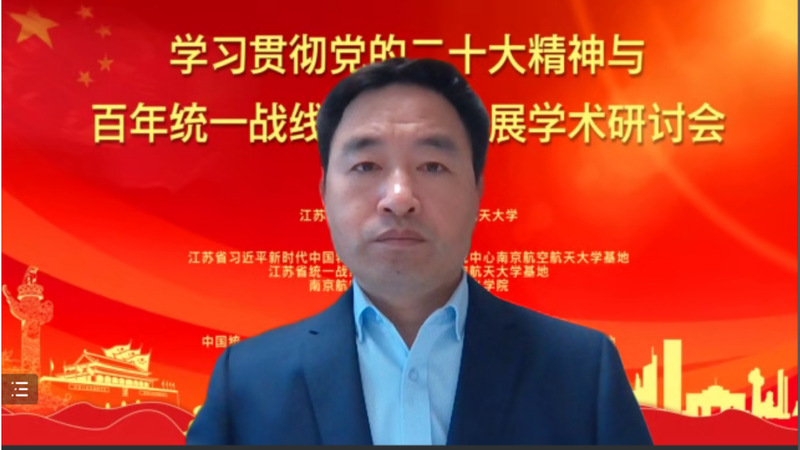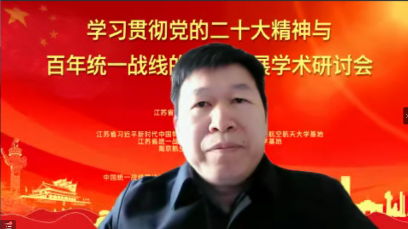 研讨会主旨报告环节由伟德bv1946官网经理、江苏省统一战线理论研究南航基地执行主任兼首席专家王智教授主持。中国人民大学伟德bv1946官网教授、中国统一战线理论研究会政党理论北京研究基地研究员何虎生,武汉大学伟德bv1946官网教授、中国统一战线理论研究会党外知识分子统战工作理论研究湖北基地学术委员会主任委员丁俊萍,浙江省委统战部二级巡视员、中国统一战线理论研究会非公经济人士统战工作理论浙江研究基地副主任杨卫敏,华东师范大学伟德bv1946官网教授丁晓强,澳门城市大学副董事长、教授叶桂平,山东大学伟德bv1946官网经理、教授张士海,广东省社会主义公司教学部教授、中国统一战线理论研究会港澳研究基地专家林伟,南京大学中国南海研究协同创新中心主任、教授朱锋,中国统一战线理论研究会新的社会阶层人士统战工作理论研究江苏基地秘书长、江苏省社科院社会学研究所所长、研究员张卫,伟德bv1946官网教授、江苏省统一战线理论研究南航基地研究员靳晓霞分别做主题为《准确把握好四对关系,促进中华儿女大团结》《新时代统一战线话语的建构》《中国式现代化与民营经济统战守正创新》《社会革命视角下的新时代统一战线》《加强港澳统一战线建设刍议》《新时代牢牢掌握意识形态工作领导权的主要着力点》《党的二十大报告有关“港澳统一战线”的创新表述》《动荡变革期呼唤海外统战新历程》《发挥新的社会阶层人士作用 扎实推进全体人民共同富裕》《中国共产党百年统一战线的重大成就和历史经验》的报告。
