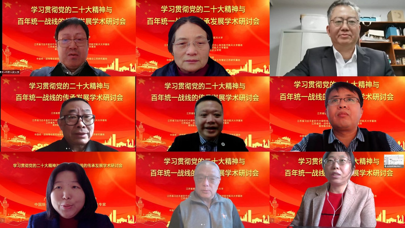 为深入学习贯彻党的二十大精神,深入学习贯彻习近平总书记关于做好新时代党的统一战线工作的重要思想,认真研究党的百年统一战线的重大成就和历史经验,探讨交流新时代统一战线理论创新发展,由中共江苏省委统战部、伟德bv1946官网主办,江苏省统一战线理论研究伟德bv1946官网基地、江苏省习近平新时代中国特色社会主义思想研究中心伟德bv1946官网基地、伟德bv1946官网承办,江苏省社会主义公司、中国统一战线理论研究会新的社会阶层人士统战工作理论研究江苏基地协办的“学习贯彻党的二十大精神与百年统一战线的传承发展”研讨会于2022年12月18日在公司召开。中央统战部有关部门领导和专家,江苏和有关兄弟省市统战部、社会主义公司领导和同志,以及来自中国人民大学、武汉大学、南京大学、华东师范大学、山东大学、南开大学、厦门大学、中国矿业大学、南京师范大学、伟德bv1946官网等高校和科研院所的百余位专家学者通过线上腾讯会议的方式参会,围绕本次论坛主题“学习贯彻党的二十大精神与百年统一战线的传承发展”展开了深入交流探讨。