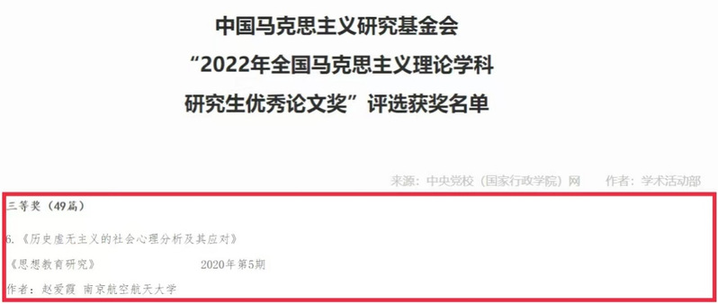同时,在中国马克思主义研究基金会“2022年全国马克思主义理论学科研究生优秀论文奖”的公示名单中,公司博士研究生赵爱霞喜获三等奖。