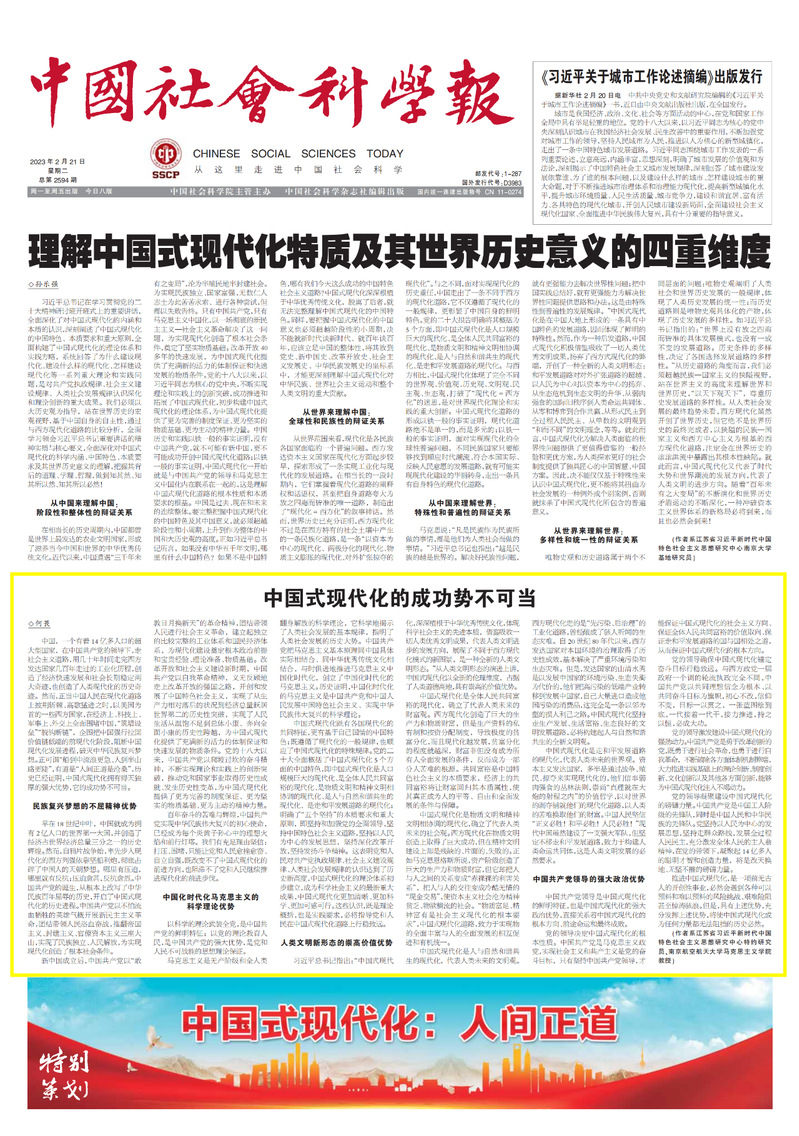 2月21日,《中国社会报》第A01版刊发了公司何畏教授的理论文章《中国式现代化的成功势不可当》,现将全文转发如下: