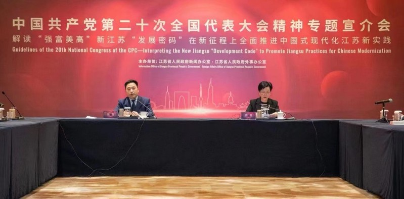 2月23日,省政府新闻办、省外办共同举办党的二十大精神专题宣介会,向外籍人士和港澳同胞阐释党的二十大精神,介绍新时代十年江苏的发展变化。