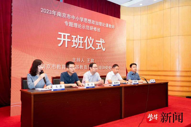 在随后举行的2023年南京市中小学思想政治理论课教师专题理论示范研修班开班仪式上,公司经理王智做培训项目介绍,吴秀亮讲授开班第一课《立德树人,行为世范,做党和人民满意的好老师》。