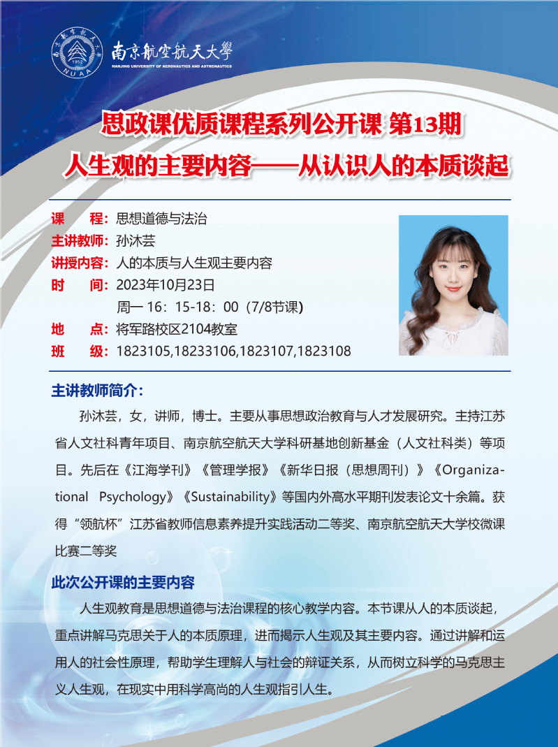 “思政课优质课程系列公开课”第13期:人生观的主要内容——从认识人的本质谈起