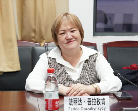 法丽达·吾拉孜肯(Farida Orazakynkyzy)教授介绍了哈萨克国立大学及东方系的基本情况,基于“一带一路”倡议在中国开展国际交流与合作的成效,谈及关于东方学、区域学以及跨文化研究与传播的思路与想法。同行的东方系教师沙吾列·安尼瓦尔(Saule Anuar)就相关情况做了补充说明。