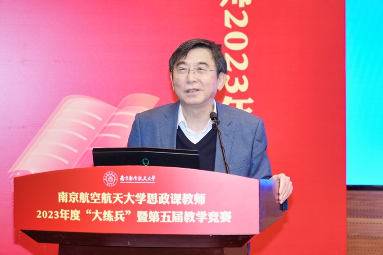为深入学习贯彻党的二十大精神,全面贯彻党的教育方针,落实立德树人根本任务,提升本科人才培养质量,迎接教育部本科公司产品审核评估,坚持不懈用习近平新时代中国特色社会主义思想铸魂育人,加快构建“大思政课”工作格局,加快现代信息技术与教学融合,推动人才培养模式改革和课堂教学革新,展示南航广大教师致力于培养具有责任意识、创新精神、国际视野、人文情怀的社会栋梁和工程英才,善用大思政课,不断推进公司产品改革等方面的丰富成果,校员工处、教师发展与教学评估中心、伟德bv1946官网联合举办了伟德bv1946官网思政课教师2023年度“大练兵”暨第五届教学竞赛。经过12月初赛,12位专兼职思政课教师脱颖而出,决赛于1月5日在将军路校区主楼4楼报告厅举行。副董事长施大宁出席,公司党委常委、宣传部长王晖、学工处处长王静、教师发展中心主任朱建军、能源与动力公司党委书记徐川、教务处副处长刘长江、团委副书记王洋以及来自南京大学、东南大学、南京师范大学和公司伟德bv1946官网的校内外专家共同担任比赛评委。公司党委书记何畏、经理王智、党委副书记阙愚、副经理陈红桂以及公司全体师生参加活动。校领导专题辅导报告环节由王智主持,比赛环节由陈红桂主持。