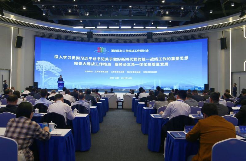 11月11日,上海、江苏、浙江、安徽三省一市党委统战部在安徽合肥召开第四届长三角统战工作研讨会,上海市委常委、统战部部长陈通,江苏省委常委、统战部部长胡广杰,浙江省委常委、统战部部长王文序,安徽省委常委、统战部部长张西明出席并作主题发言。