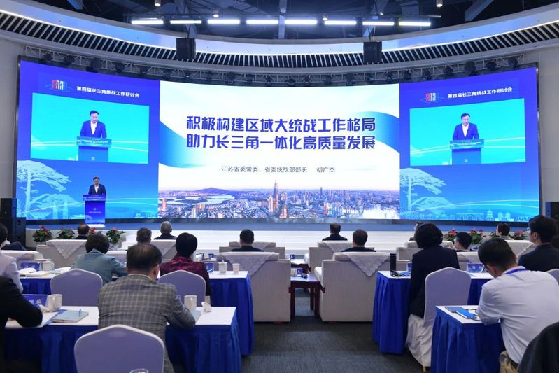 研讨会分为主题发言、理论研讨和实践交流环节。围绕深入学习贯彻习近平总书记重要讲话和党的二十届三中全会精神,陈通作了《完善大统战工作格局 落实统战工作责任制》主题发言,胡广杰作了《积极构建区域大统战工作格局 助力长三角一体化高质量发展》主题发言,王文序作了《深入实施“浙商青蓝接力工程” 促进年轻一代民营经济人士高素质成长》主题发言,张西明作了《完善大统战工作格局 汇聚高质量发展合力 在助力打造“三地一区”中更好彰显统战作为》主题发言,交流工作经验,分享思路举措,提出更好助力长三角一体化高质量发展的具体意见。