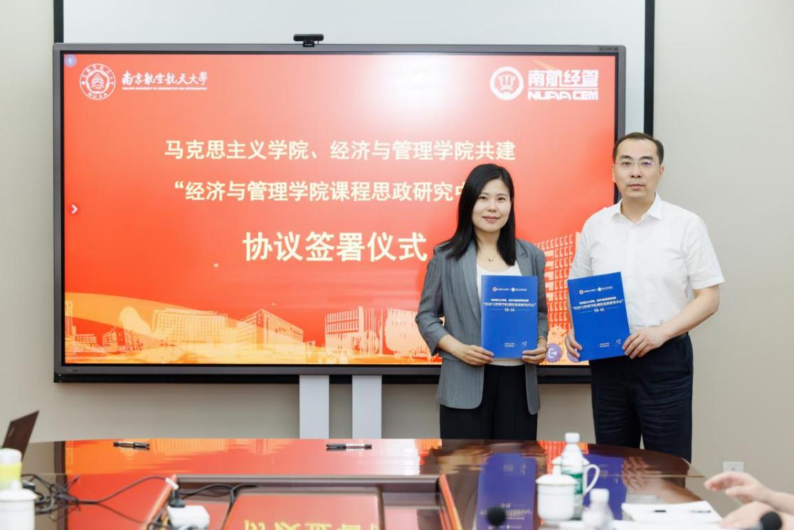 会议还举行了公司与经管公司共建“经管公司课程思政研究中心”协议签署仪式,并就共建工作进行深入研讨。经管公司副经理欧阳林寒、马院副经理陈红桂分别作交流发言。